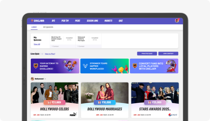 Games ready now. Predictors, Pick’em, Fantasy Lite, Trivia, Brackets, Moments, Private Leagues—theme able for your leagues and World Cup 2026.